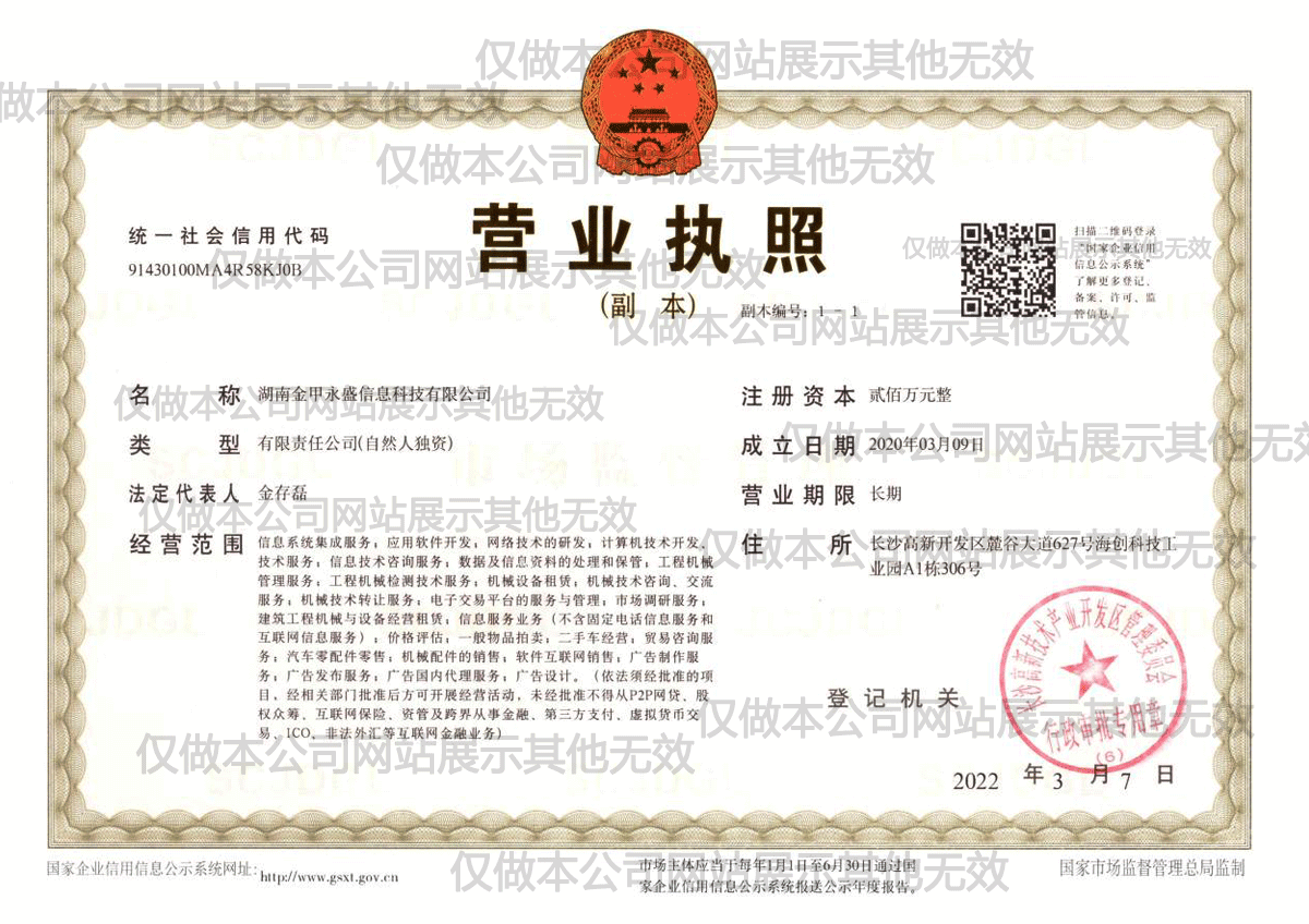 湖南金甲永盛信息科技有限公司,成立于2020年3月,地址位于長(zhǎng)沙市高新開(kāi)發(fā)區(qū)麓谷大道627號(hào)新長(zhǎng)海中心,總辦公面積為400平方米,緊鄰長(zhǎng)張高速,交通便利,與中聯(lián)重科麓谷產(chǎn)業(yè)園相毗鄰。
